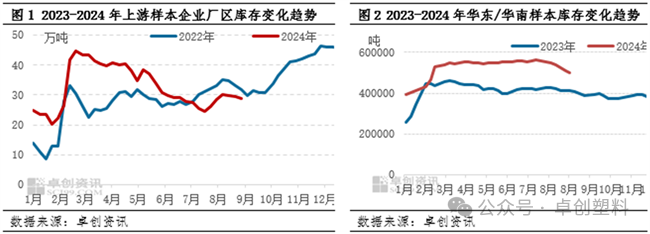 对于9月份需求来看,在房地产数据延续弱势的情况下,PVC需求难言乐观,据了解,目前大型薄膜企业开工6-7成;医药片材6成左右;地板企业大厂开工在4-6成;电线电缆大厂开工6-8成;管材大厂多数在4-5成,小厂2-3成;型材中大厂开工4-5成,小厂偏低。9月份虽然天气转凉,部分制品企业开工有略改善可能,但整体在地产弱势背景下,制品企业整体开工难言乐观。