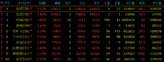 期货收评:焦煤涨超4%,纯碱、焦炭、铁矿石、烧碱、工业硅涨超3%,SC原油、碳酸锂涨近3%,集运指数跌超5%