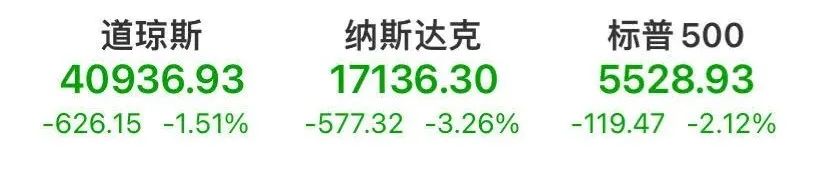 截至收盘,美股三大指数集体收跌,均创8月6日以来最大单日跌幅。