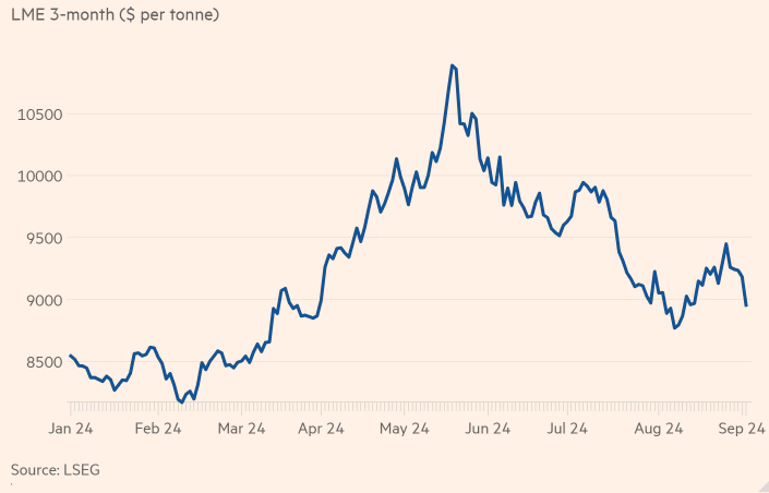 明年铜价遭下调,近期或在8500-9500美元区间波动