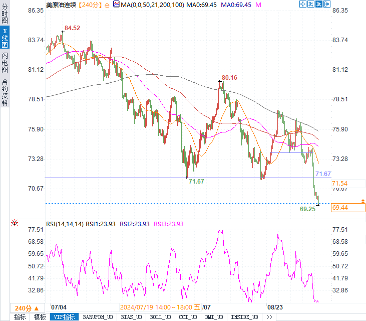 与此同时,WTI原油价格也持续走低,接近70.05美元/桶的预期目标位,并有可能在短期内进一步下跌至69.05美元/桶或更低。