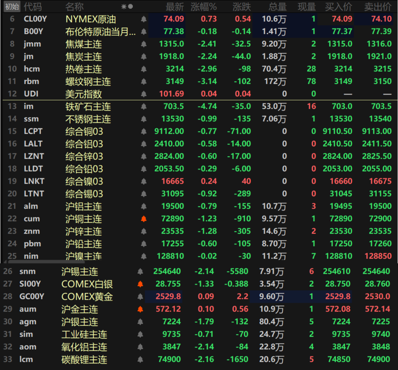 金属近全线下行沪锡跌超2%黑色系集体下挫铁矿跌4.74%【SMM日评】