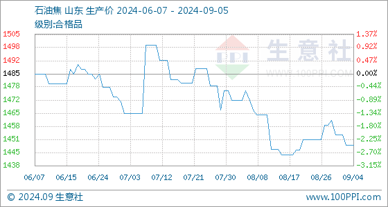 9月5日生意社石油焦基准价为1449.00元/吨