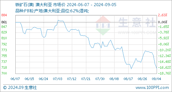 9月5日生意社铁矿石(澳)基准价为716.22元/吨