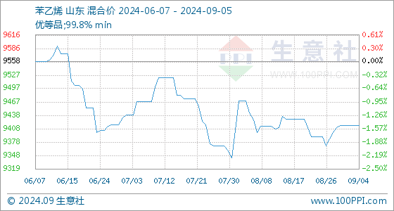 9月5日生意社苯乙烯基准价为9416.00元/吨