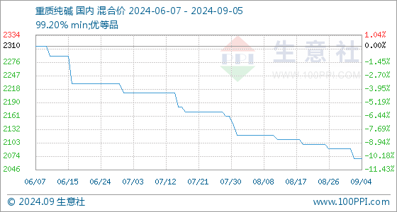 9月5日生意社重质纯碱基准价为2070.00元/吨
