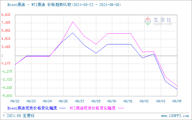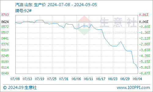 进入本轮计价周期,国际油价行情走势下滑,截止4日,美国WTI原油期货主力合约结算价报69.20美元/桶,布伦特原油期货主力合约结算价报72.70美元/桶。本轮周期内原油行情下滑,一方面受中东紧张局势缓和,利比亚宣布有望解决限制原油出口,原油供应紧张缓解,国际油价大幅走低。另一方面担忧中国原油需求不及预期,加之美国用油旺季结束,拖累原油市场。整体来看周期内原油行情下滑,原油变化率负向拉大,截止5日,第十个工作日原油品种变化率为-2.61%,对应每吨汽油下调100元、柴油下调100元,折合每升92#汽油下调0.08元、95#汽油下调0.08元、0#柴油下调0.08元。