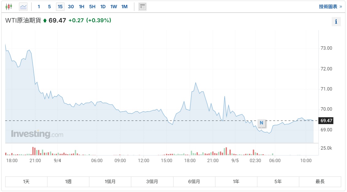 截至发稿,WTI原油期货涨0.27%,报69.47美元/桶。布伦特原油涨0.50%,报73.06美元/桶。
