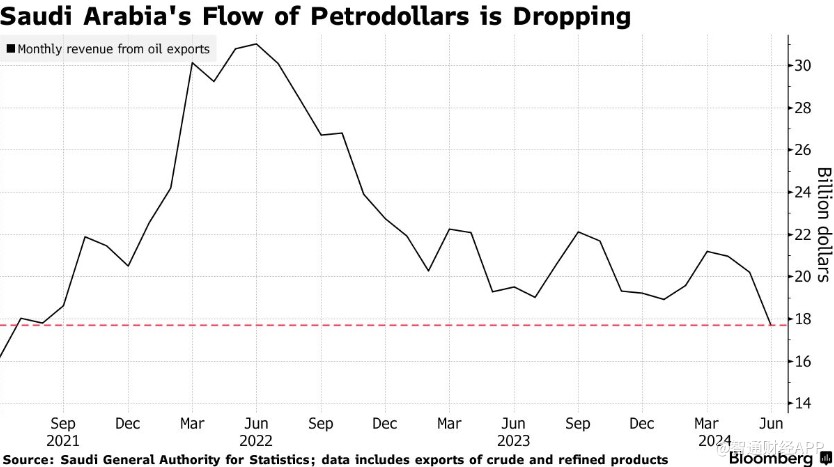 沙特的石油出口收入下降