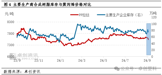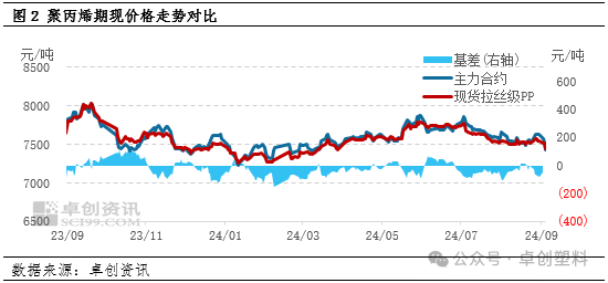 就聚丙烯金融属性层面来看,随着聚丙烯金融属性不断增强,期货波动趋势对现货市场价格及心态的影响是至关重要。9月初,聚丙烯期货连续走低,现货走势与其基本一致,可见期货盘面与现货形成高度相关。基差方面来看,随着近几日期货跌速加快,基差也由负转正。总之,PP期货连续下行对现货市场心态压制较明显。