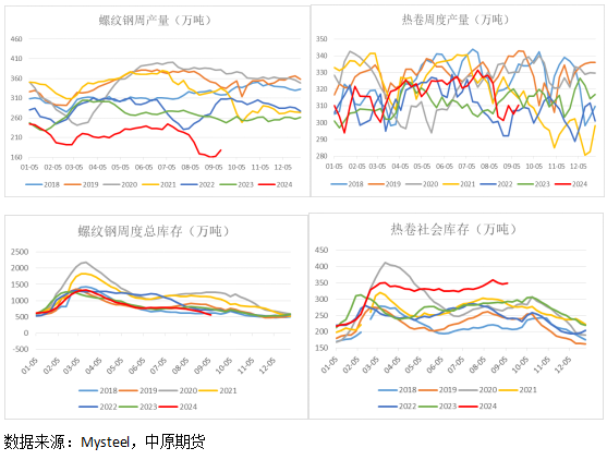 从产业供需格局来看,本周五大材产量端回升明显,总产量增加22.51万吨,主要增产集中在螺纹钢和热轧板卷。其中,螺纹钢增产16.27万吨,表需相对持稳,较上周微增0.24万吨至218.61万吨,总库存依旧去库,较上周下降40.08万吨至555.63万吨,已经低于2023年同期26%,其中社库下降明显,较上周下降33.57万吨至409.27万吨,厂库下降6.51万吨至146.36万吨。此外,截止9月4日,Mysteel数据显示螺纹钢旧国标市场库存占比28.42%,较8月中旬库存压力明显降低。从基本面结构来看,当前螺纹钢供需绝对量均相对偏低,库存低位对现货市场挺价提供一定支撑,这也导致近期期货跌幅大于现货,基差持续走扩。后续关注的重点仍在于需求端边际变化,尤其是产量逐步恢复后,需求承接能力。