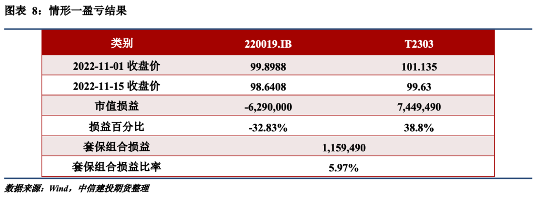截止2022年11月15日的套保效果如下(为更直观比较,套期保值案例的收益计算也均年化),可见本案例的收益率排序为:空头套保(5.97%)>卖出现券并拆出资金(1.85%)>持有现券(-32.83%)。