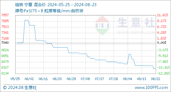 8月23日生意社硅铁基准价为6278.57元/吨