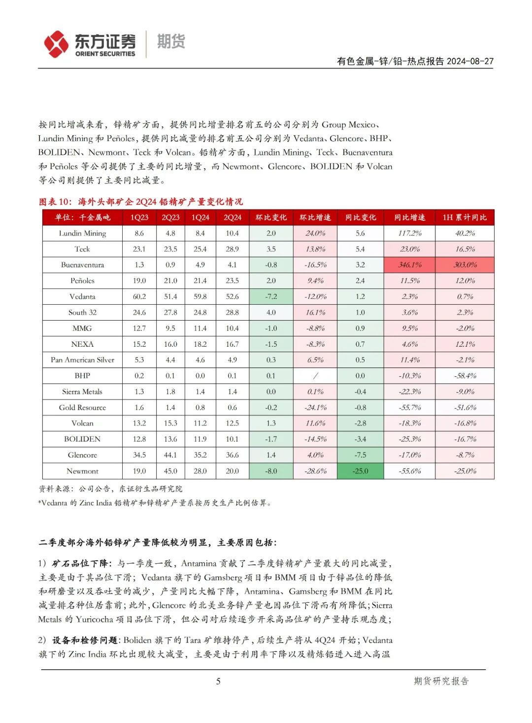 铅/锌:海外铅锌矿企业季度运营分析-矿紧边际加剧,修复预期有限