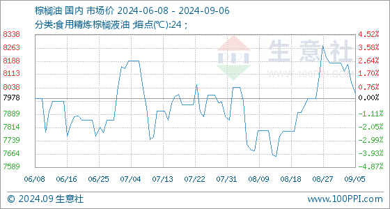 9月6日生意社棕榈油基准价为8006.00元/吨