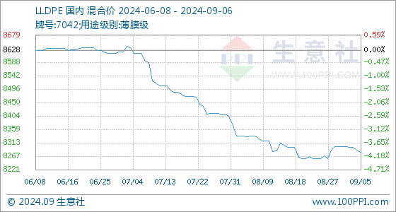 9月6日生意社LLDPE基准价为8280.00元/吨