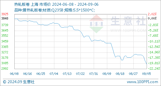 9月6日生意社热轧板卷基准价为3070.00元/吨