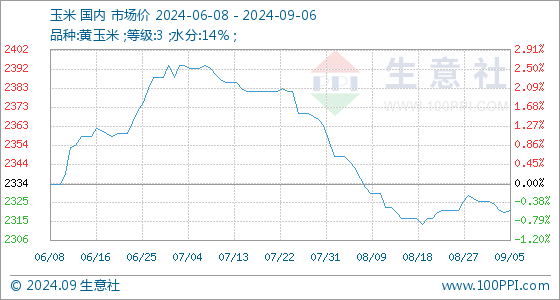 9月6日生意社玉米基准价为2321.43元/吨