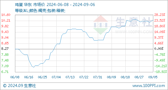 9月6日生意社鸡蛋基准价为10.27元/公斤