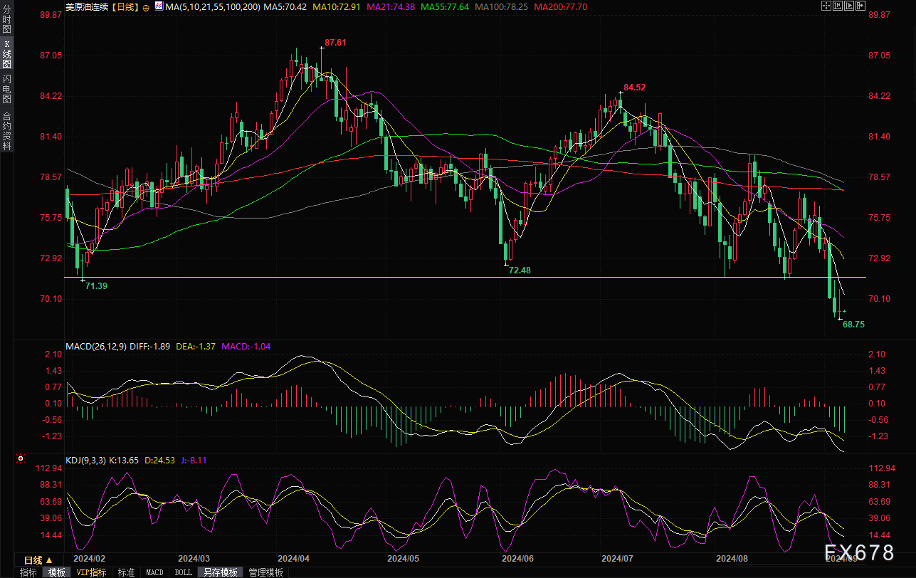 技术面来看,油价短线下跌动能有所减弱,也受到近15个月低位支撑位的支撑,K线录得十字星,需要提防油价震荡筑底的可能性,上方留意5日均线70.42附近阻力。