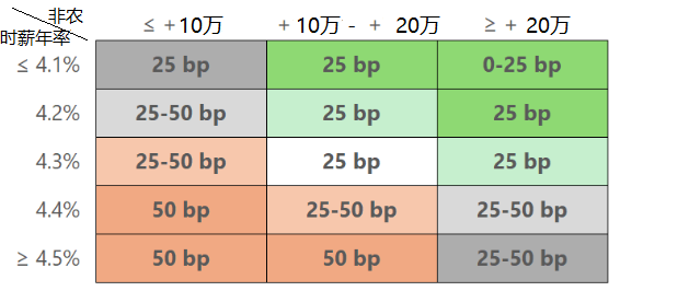Weller援引StoneX集团的预测,指出8月非农增幅和平均时薪年率对美联储9月降息幅度的影响,具体如下: