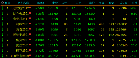 期货收评:集运指数跌7%跌至前期低点,纯碱跌2%,焦煤、焦炭、棉花、红枣跌近2%,烧碱涨3%,LU燃油涨超2%