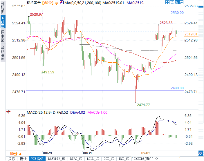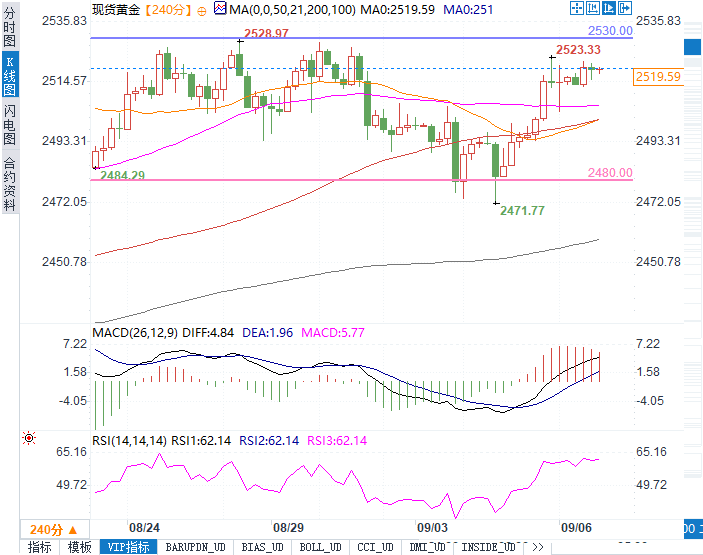 4小时图:显示2480美元支撑位与2530美元阻力位之间的交易区间。市场参与者在支撑位买入、在阻力位卖出。非农就业数据的公布可能会引发价格突破当前区间。000