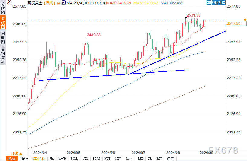若金价升穿8月20日的历史高位2,531美元,将进一步确认金价将继续向2,550美元的目标位上涨。