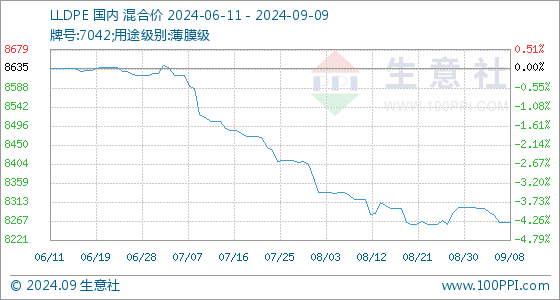 9月9日生意社LLDPE基准价为8263.33元/吨