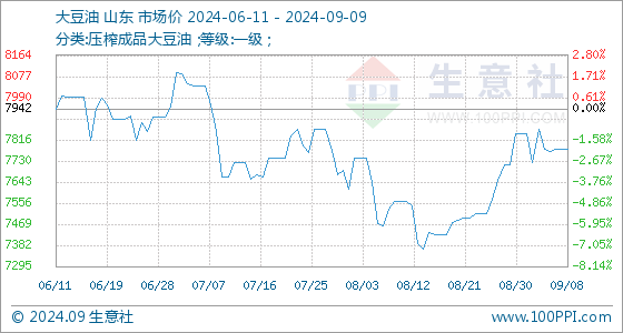 9月9日生意社大豆油基准价为7780.00元/吨