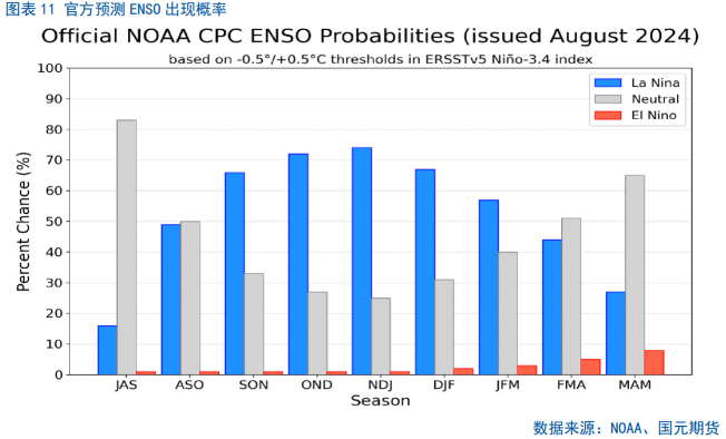 核心观点:新年度全球食糖产量宽松,在宏观偏弱的情况下容易产生拖拽,目前官方预计拉尼娜发生时间有所延后至四季度,三季度偏多的降雨可能对巴西产糖量有持续的影响,注意巴西产糖量的修正预期,同时北半球充沛的降雨将利好第二个榨季甘蔗单产,将对盘面形成持续的边际利空。短期巴西圣保罗州大火急剧推升原糖价格,技术上出现超买,谨防回调。