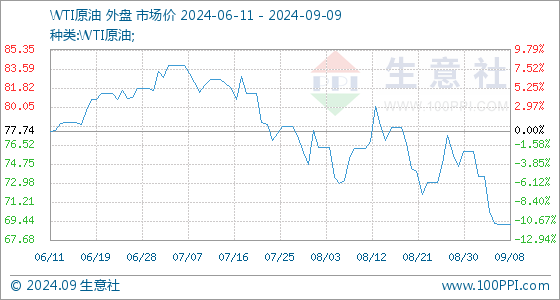 9月9日生意社WTI原油基准价为69.15美元/桶