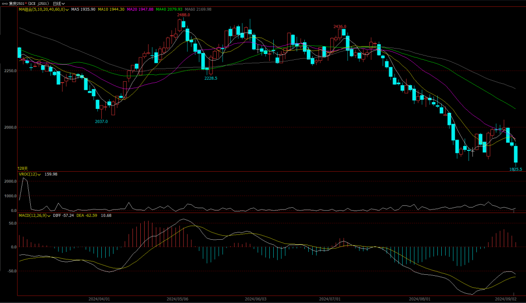 焦炭2501合约收报于1843点,高于前主力低点,但在1月合约上创15个月新低。