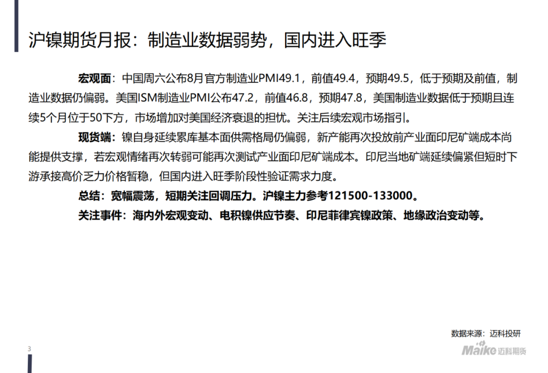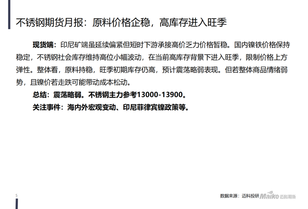 【迈科镍&不锈钢月报】市场情绪弱势,国内验证旺季需求
