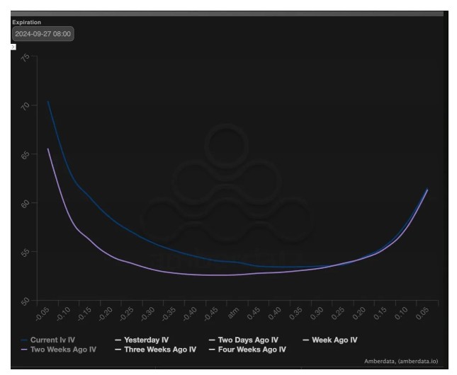 “目前的押注在10月25日之前是看跌的,在选举之前则略微看涨,”他表示。“当我们看11月时,我们开始看到看涨期权的买入价高于看跌期权,但事实并非如此,这对我来说相当令人震惊。这表明目前市场存在多大的恐惧。”