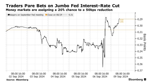 数周来,市场一直存在分歧,即通胀趋稳和就业数据恶化的迹象,是否会促使美联储以降息25个基点或更大幅度的举措启动宽松政策。投资者不确定接下来会发生什么,也不确定美联储是会大幅降息,还是采取更为渐进的方式。
