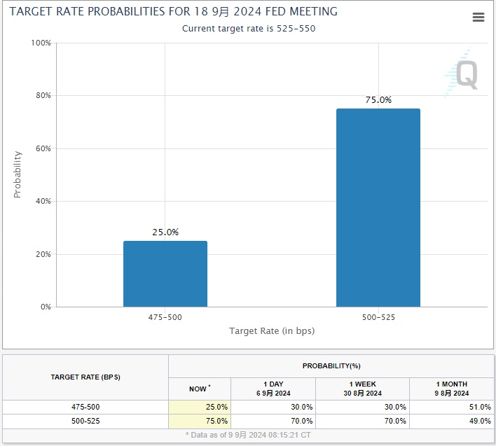 对政策前景变化最为敏感的两年期国债收益率上升了6个基点,至3.71%,而10年期国债收益率攀升了5个基点,至3.76%。目前,交易员将美联储在即将到来的9月会议上降息50个基点的可能性从上周的高达51%降至25%。