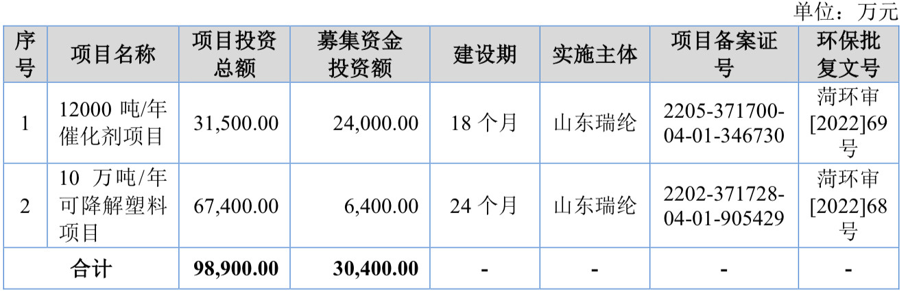 瑞华技术持续钻研精细化工技术及相关产品开发,拟布局高附加值的环保型新材料市场,计划将已掌握的可降解塑料PBS、PBAT和高端PS材料等成套技术。据了解,瑞华技术募集资金扣除发行费用后拟用于以下列项目: