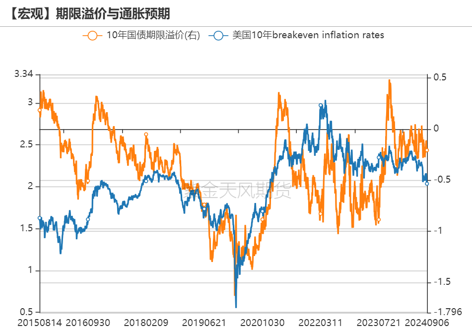 上周公布的JOLTS职位空缺、ADP新增就业以及非农数据均显示劳动力市场减速,10y UST下行近20bp至3.71%、美元指数走低0.54%至101.2、伦敦现货黄金的收盘价小幅下行至$2497.1/oz。当前面临的关键问题是劳动力市场的放缓是否有可能演变成一场衰退,这决定了美联储是逐步放松政策还是前置性降息。往后看,本周将公布的8月CPI数据预计显示价格压力降温,鉴于8月底的Jackson Hole会议上联储官员明确表示了“劳动力市场是首要关注点”,通胀数据可能不会引起太大波澜,对黄金而言,短期仍将在高位窄幅震荡。