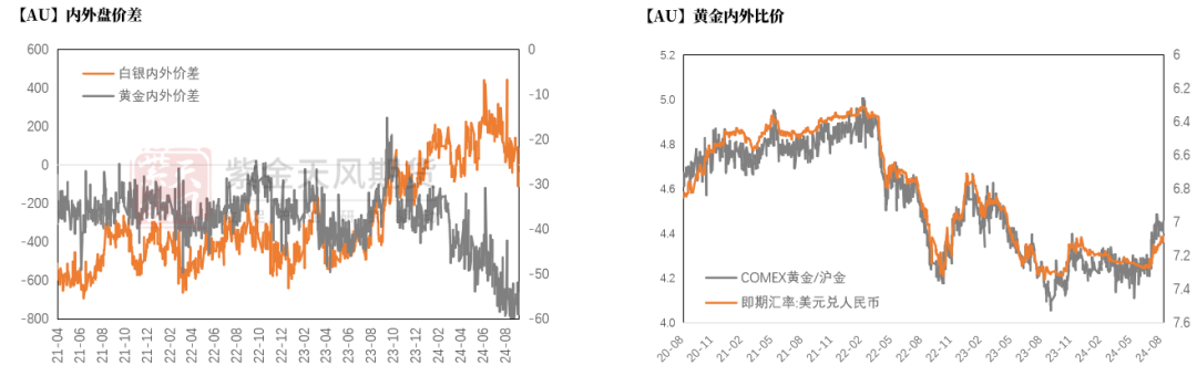 上周黄金内外价差小幅走高,与人民币兑美元汇率小幅升值有关;白银内外价差下跌。