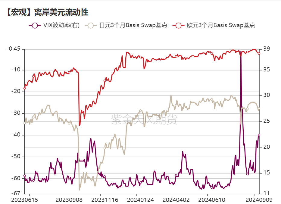 上周日元3个月Basis Swap与欧元3个月Basis Swap环比走低,离岸美元流动性融资成本抬高。