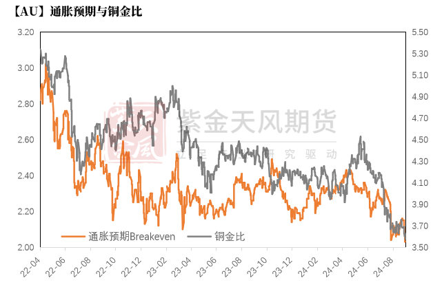 上周铜金比降至3.6,铜价跌幅超过黄金,显示全球总需求动能边际下降。