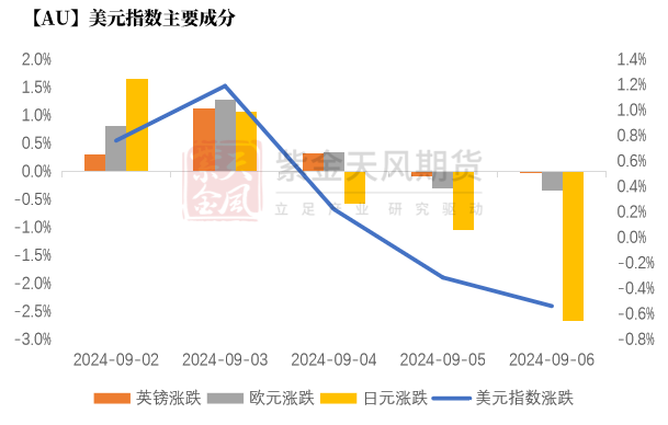 上周美元兑日元贬值2.7%、美元兑欧元贬值0.3%、美元兑英镑保持不变。