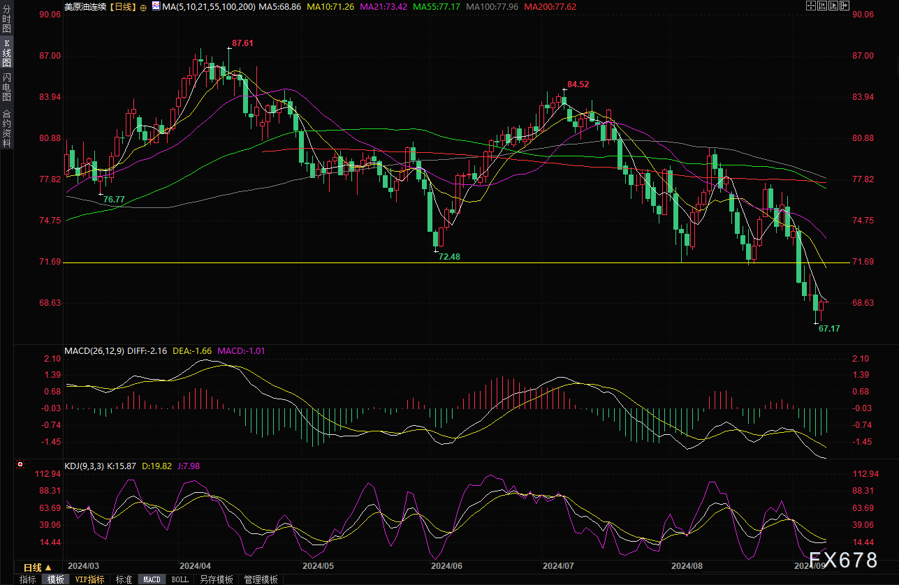 上周五,布伦特原油和美国柴油期货均收于2021年12月以来最低。美国原油收于2023年6月以来的最低价,美国汽油期货RBc1收于2021年2月以来的最低水平。