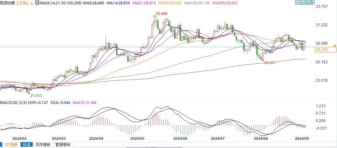 北京时间9月10日13:00,现货白银报28.25美元/盎司
