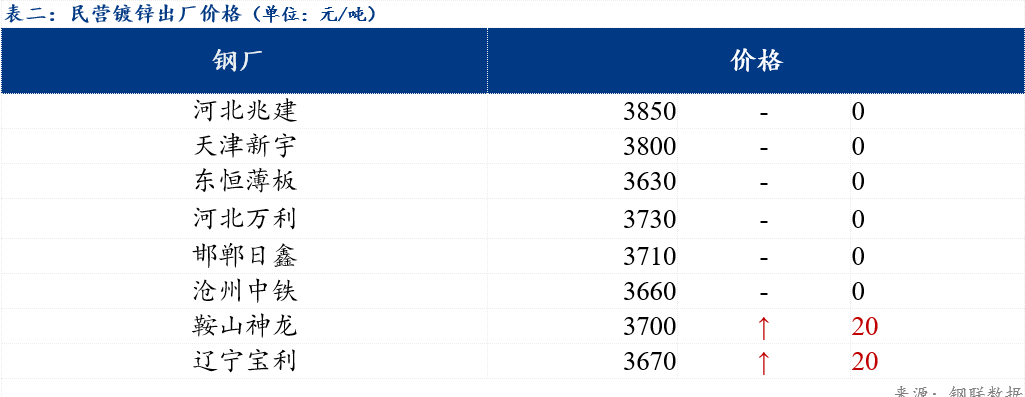 现北方地区民营镀锌板卷整体出厂价格在3630-3850元/吨。