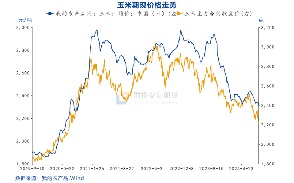 美国方面,8月的USDA月度供需报告预计,24/25年度美国玉米产量为151亿蒲,上调了4700万。玉米单产预测更是创纪录的每英亩183.1蒲,是绝对的丰产预期。之后结束的Pro Farmer美国职业农场主组织的田间巡查结果,更是基本确认了2024美国新季玉米的大丰收预期。随即美玉米跌至4年新低,虽然随后优良率略有下降,美玉米出口也有所好转,但也难逃低位震荡的局面,新的驱动也需等待秋粮收获后再显现。9月USDA月度供需报告将在北京时间9月13日凌晨公布,目前预计会调降玉米产量,但回顾过往,在9月份的报告中调降数据也并不少见,总体调整不大。