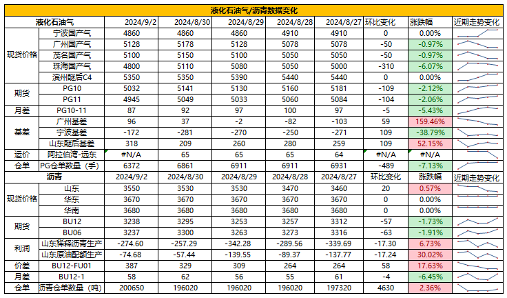 3.现货持稳,山东民用气5100元/吨(0),华东民用气4890元/吨(+19),华南民用气5150元/吨(-50)。