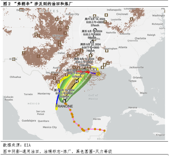 (3)“弗朗辛”对原油供应端扰动性有限且影响短暂