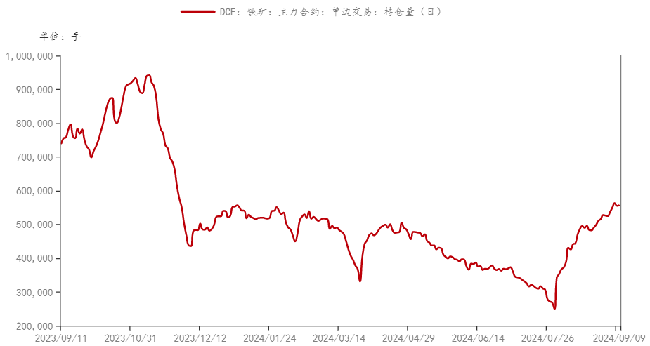 截至9月9日,铁矿2501合约持仓557024手,较上一周增6.1%。